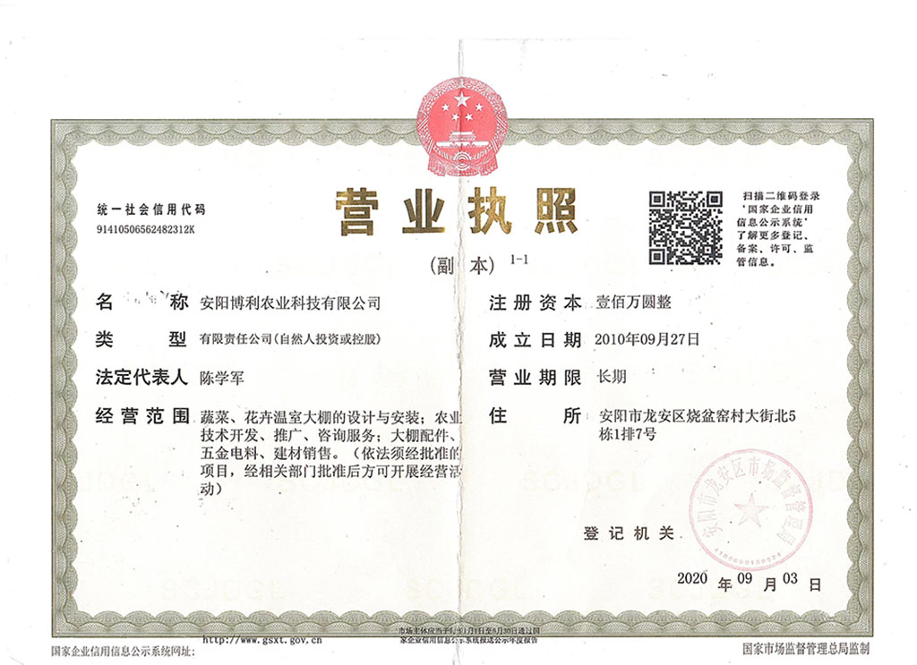 安陽博利農業科技有限公司,是一家專業生產溫室大棚的現代化企業。公司擁有大棚材料生產線,各種加工折彎,縮頭等設備,及專業研發、技術人員,提供設計、制作、安裝及售后全程服務。公司在鍍塑鋼管大棚,幾字鋼、C型鋼溫室大棚,薄膜連體大棚,玻璃智能連棟大棚,反季節蔬菜溫室大棚,花卉大棚,育苗大棚,陽光板中空玻璃大棚,食用菌大棚,各種畜牧養殖大棚,特殊養殖大棚,生態觀光種殖大棚,生態農業餐廳,等各種建造中,成績斐然。